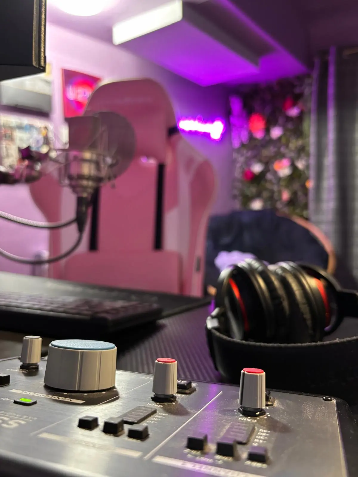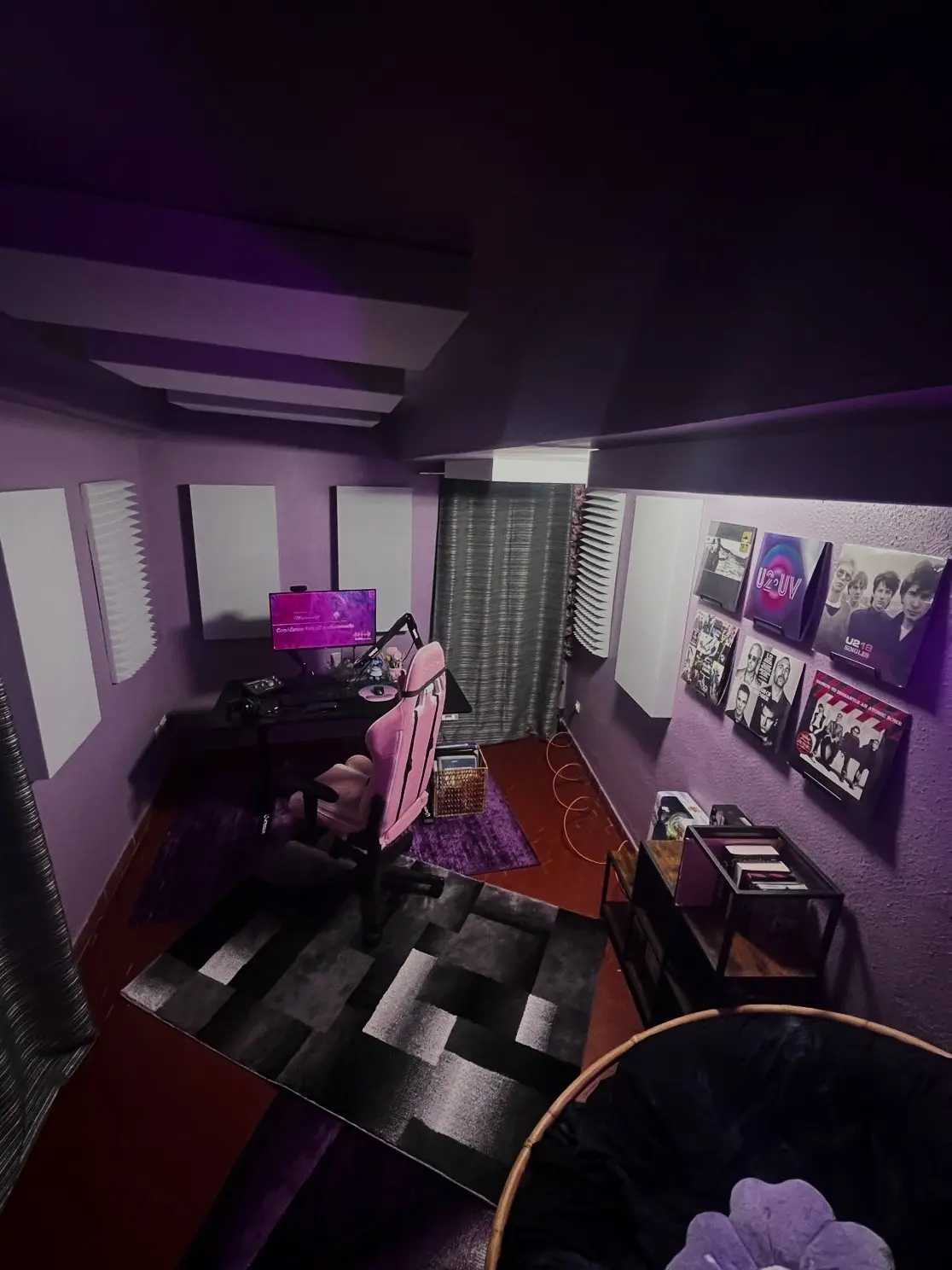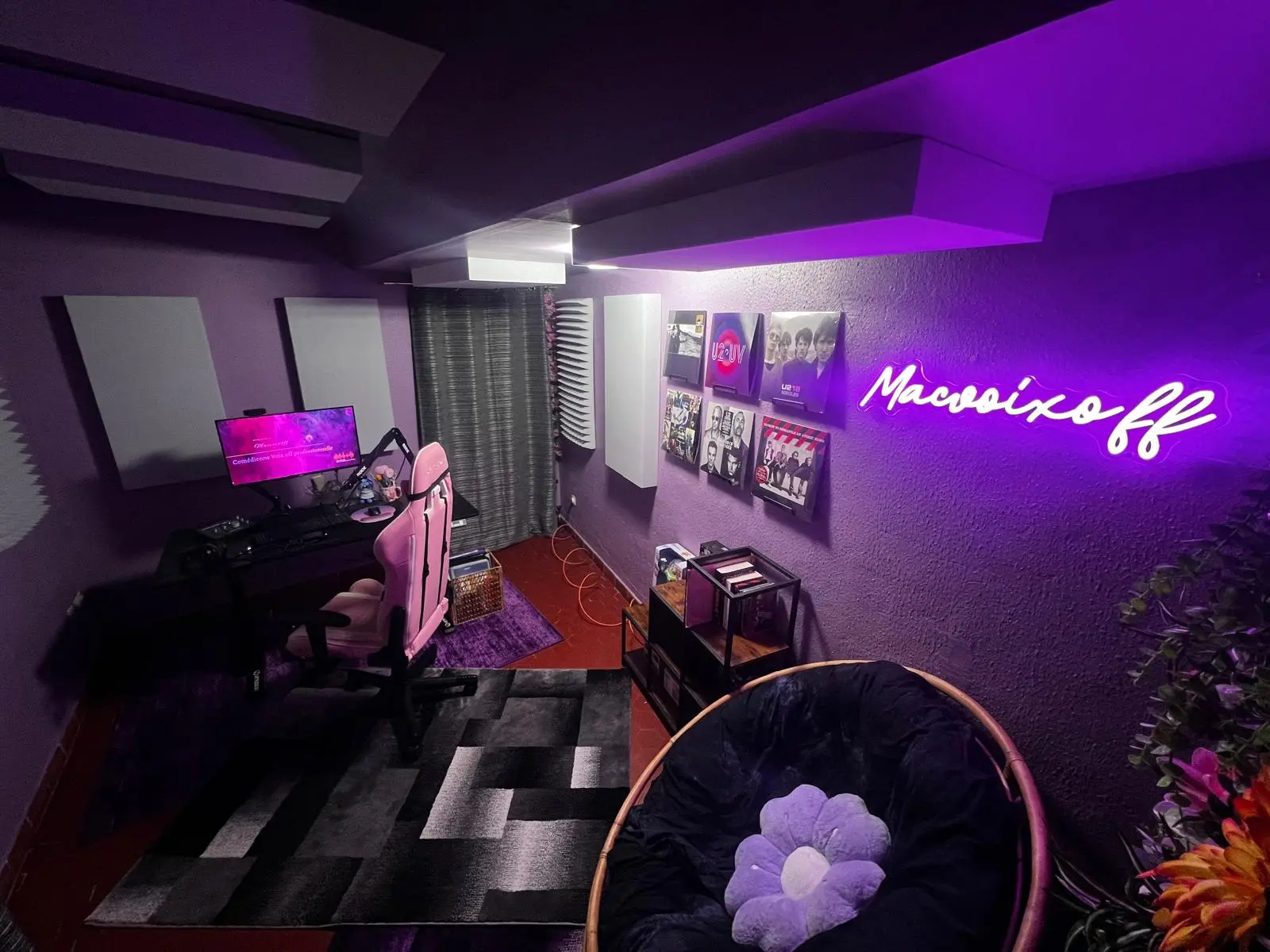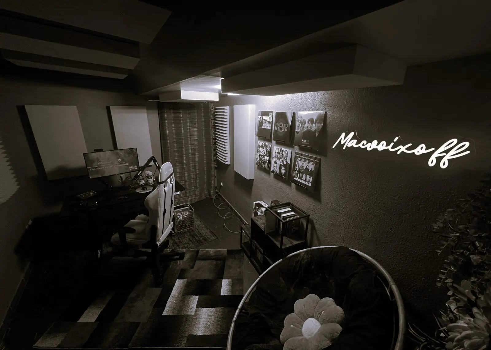 Quelques vues du setup, de l'espace d'enregistrement et du poste de travail.